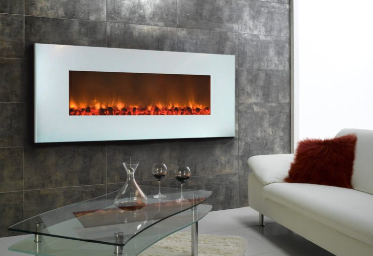 Встроенный в стену электрокамин подходит для современных интерьеров