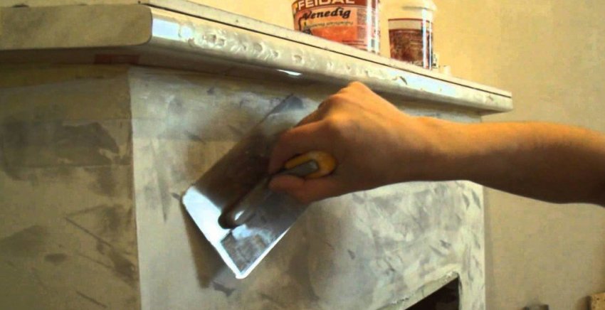 Венецианская штукатурка на портале электрокамина смотрится изысканно