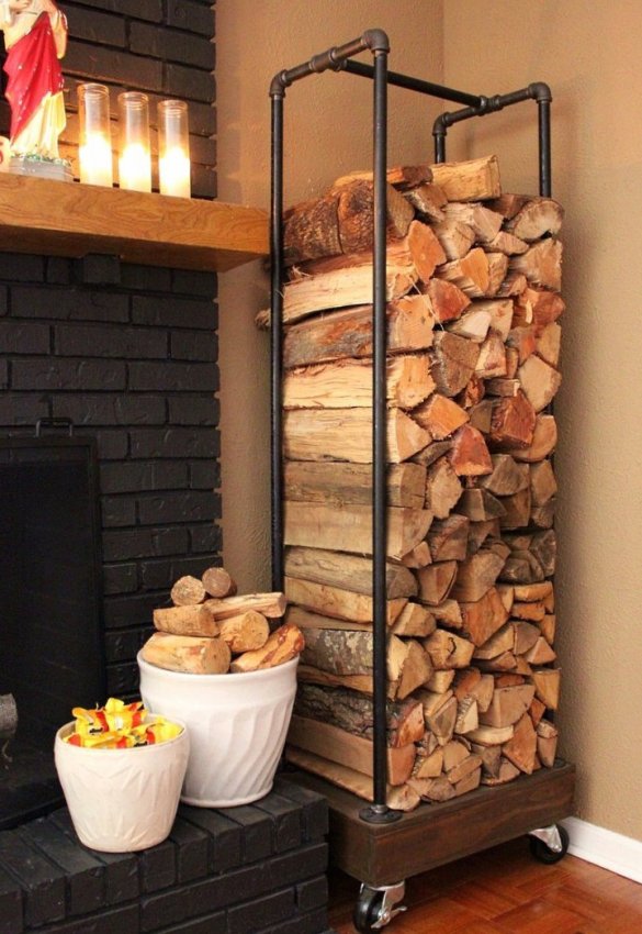 Ещё один приём из той же оперы — установить рядом с камином поленницу. Она представляет собой ящик, довольно высокий, но неглубокий — дно врезано почти у самого верха. На него укладывают несколько настоящих поленьев или муляжей, выполненных из пластмассы или керамики (продаются в магазинах).