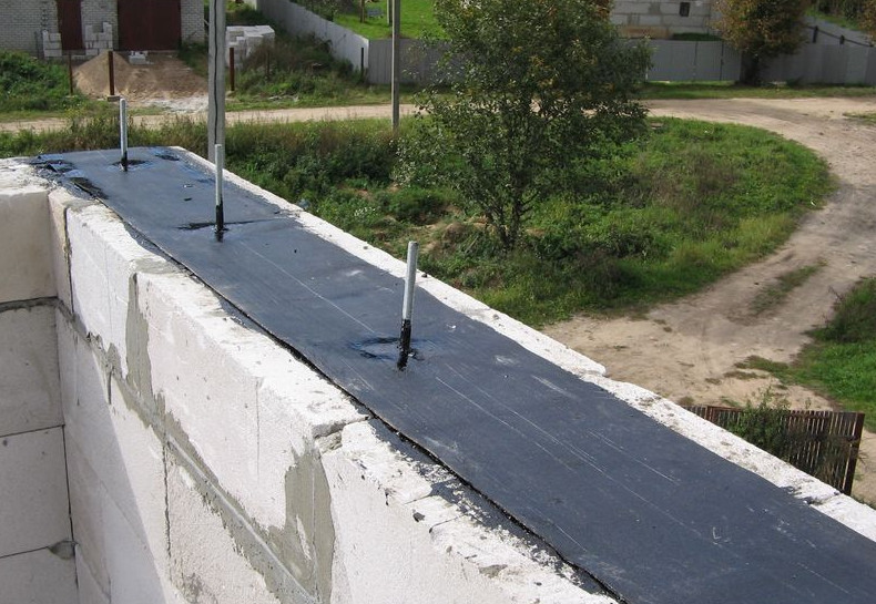 Перед укладкой мауэрлата армопояс накрывается рубероидом