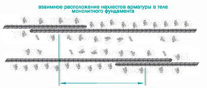 При формировании ниток арматуры необходимо обеспечить минимально допустимое расстояние между соседними соединениями арматурных стержней в 61 см