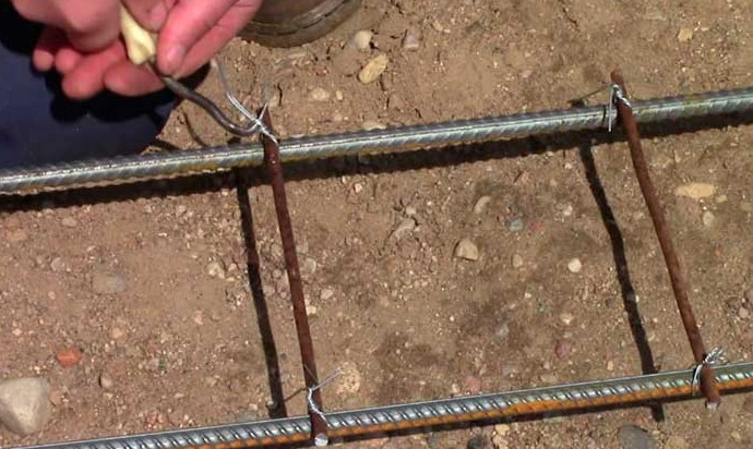 - Варить каркас электросваркой нельзя — арматурная сталь в зоне соединения из-за перегрева станет хрупкой. Каркас следует связывать отожжённой проволокой (неотожжённая будет ломаться), используя специальный вязальный крючок или пистолет.