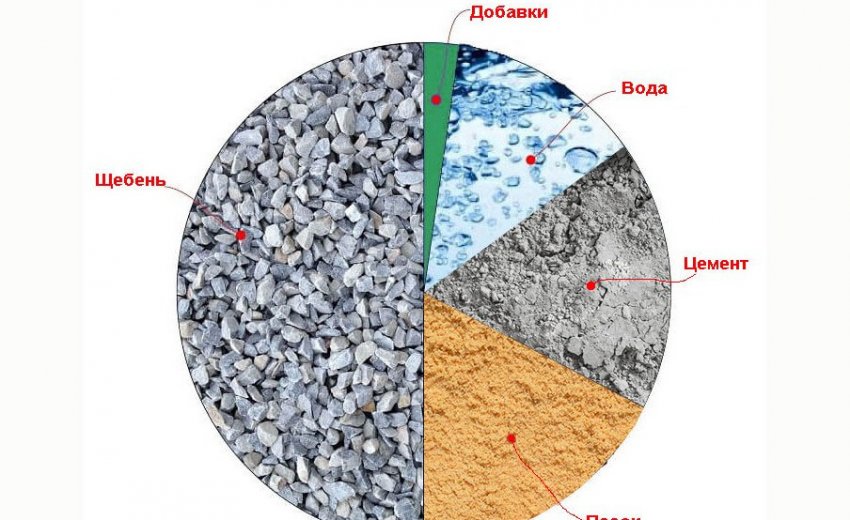 Примерное соотношение составляющих бетонной смеси можно представить в качестве диаграммы