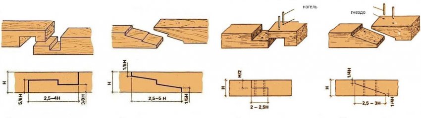 Обычно мауэрлат собирают из нескольких брусьев, так как длины одного недостаточно: соединять их следует косым прирубом или прямым замком.