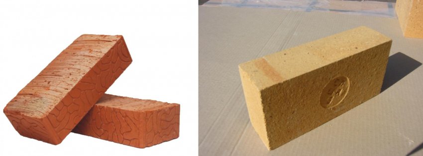 Шамотный и красный крипичи различаются своими свойствами: шамотный кирпич жаростойкий, но более хрупкий, а красный кирпич хорошо удерживает влагу и используется в основном как облицовочный