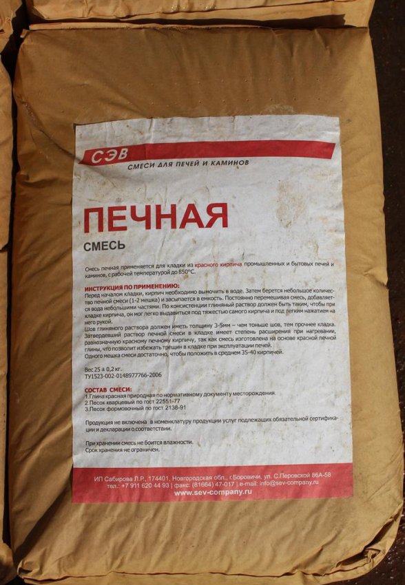 Состав смеси, изготовленной в заводских условиях: глина красная природная, песок кварцевый, песок формовочный