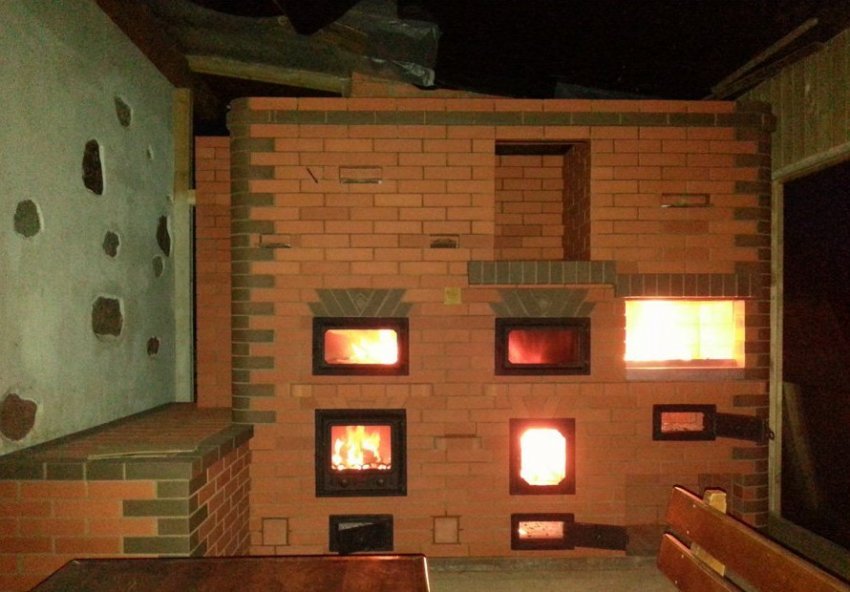 Комбинированная модель печи с камином: расположение камина на печи выбирается, исходя из планировки комнаты — боковой камин, задний камин и боковой с лежанкой