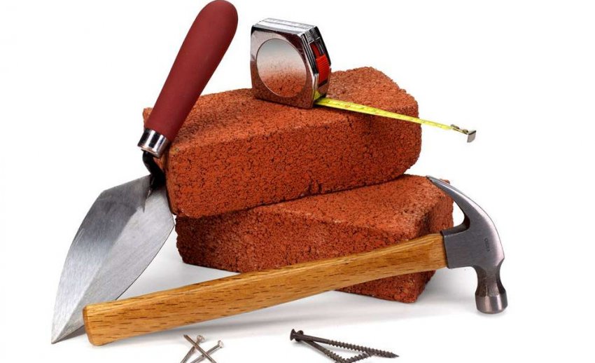 - Мастерок каменщика, молоток, кельма, расшивка.