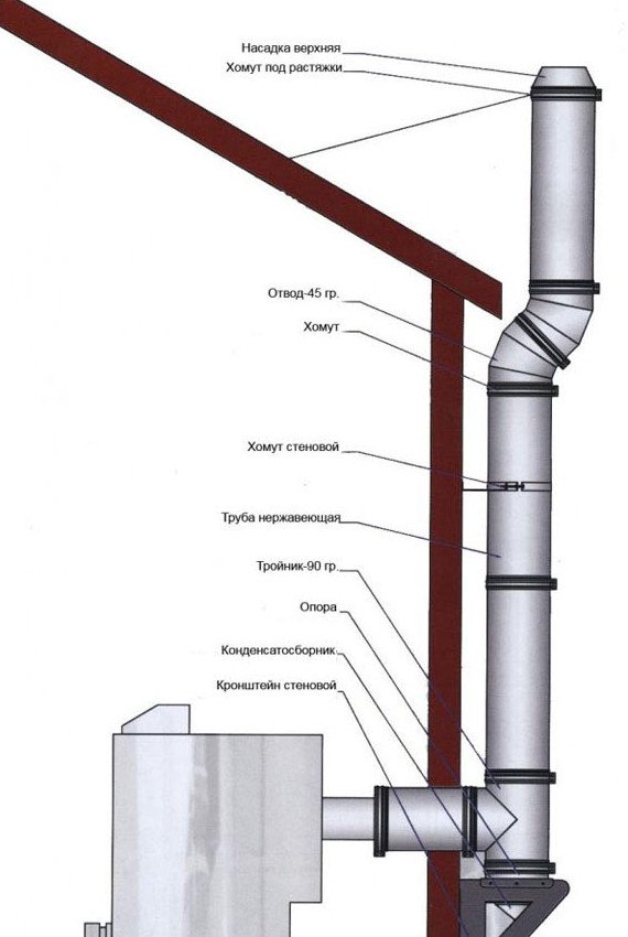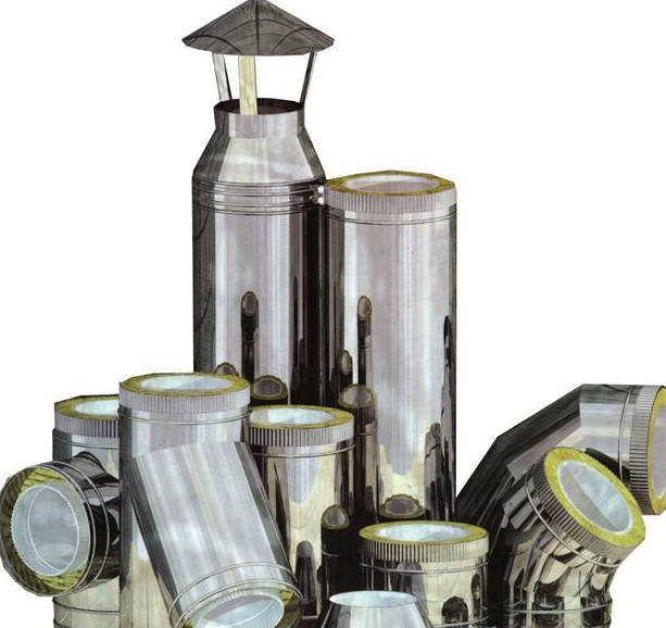 Материал также должен быть лёгким и жаропрочным. Обычно используют металл. Можно взять трубу из асбестоцемента, но только в верхней части системы, потому что она не выдерживает температуру выше 280 градусов. Для монтажа стандартного дымохода нужны: