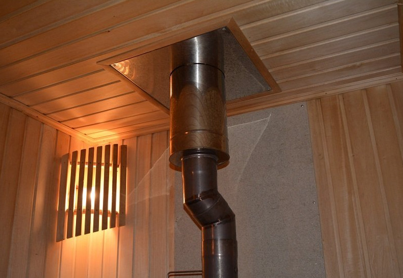 Дымоход может быть зафиксирован в потолочном перекрытии