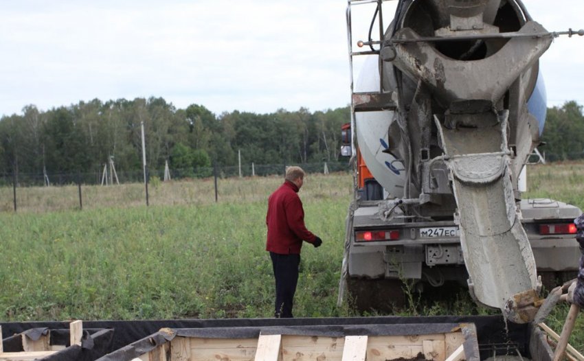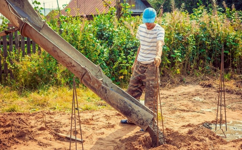 Для заливки бетонной смеси желательно использовать технику или строительный рукав