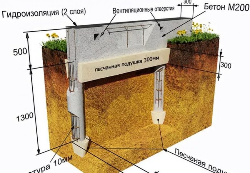 Ленточный фундамент представляет собой железобетонную монолитную ленту