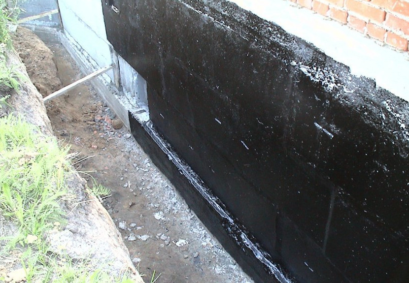 - Выполнить работы по гидроизоляции фундамента. Конструкция оклеивается рубероидом, в качестве клеящего состава используется битумная мастика.