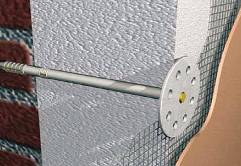 При помощи зонтиков выполняется дополнительное крепление пенополистирола к бетону
