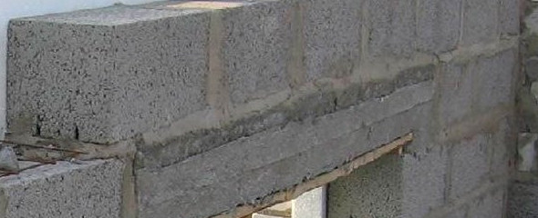 - над оконными и дверными проёмами шириной до 1200 мм выполняют рядовые перемычки прокладкой доски толщиной 40 мм. При большей ширине проёма перемычку надо изготавливать из металлопроката или приобретать готовую из ячеистого бетона. Под опору бетонных или металлических перемычек на ширину 250 мм с каждой стороны проёма, превышающей его ширину, подкладывают полнотелый кирпич;