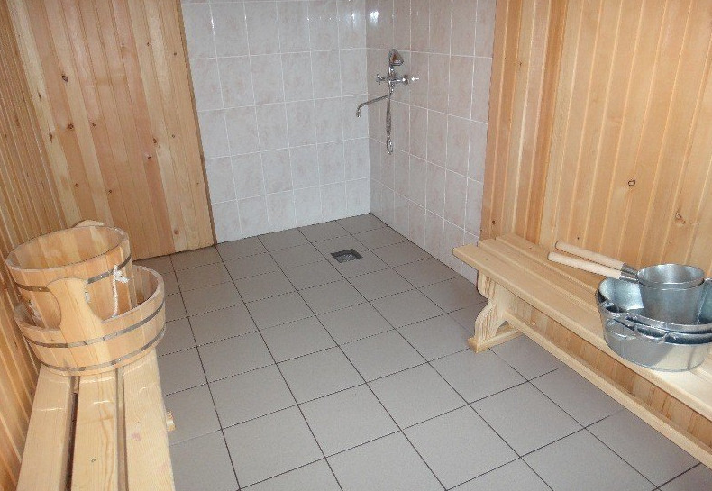 - В комнате отдыха монтируют доски чистого пола, в парной, моечной и санузле укладывают в два слоя плиты влагостойкого материала, а затем плитку или другое финишное покрытие.