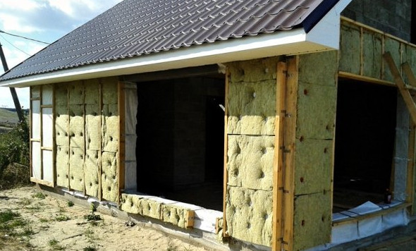 - Стены проще всего утеплить каменной ватой или экструдированным пенополистиролом по деревянному каркасу с навесным фасадом из сайдинга или блок-хауса, который даст полную иллюзию бревенчатой бани.
