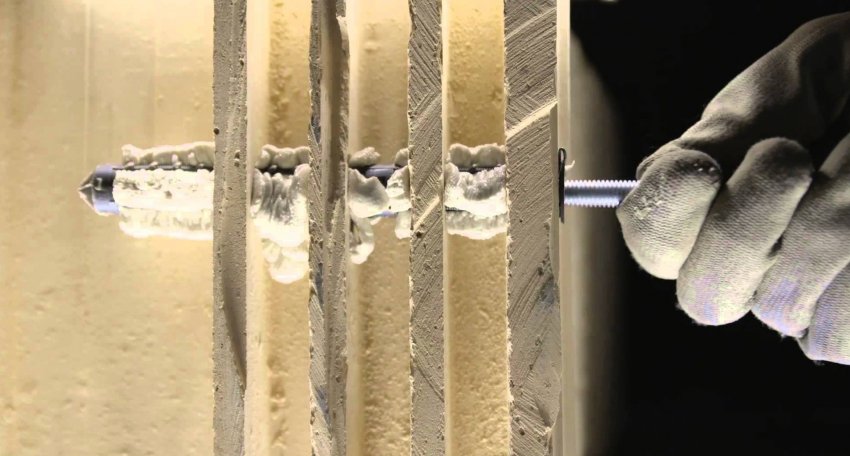 Для установки в пустотелые конструкции в отверстие вставляется анкерная гильза, а уже в неё закручивается шпилька