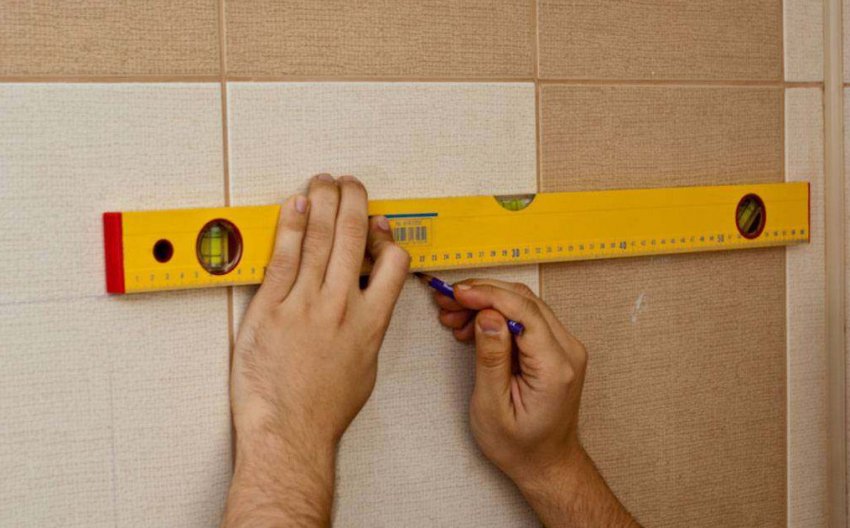 - Перед монтажом бойлера на стену мелом или маркером нарисуйте на ней нижнюю черту размещения прибора. Затем замерьте расстояние от крепёжной планки, присоединённой к корпусу водонагревателя, до нижней черты и отметьте это расстояние. При осуществлении разметки обратите внимание на высоту от отверстий на анкерах до верхней точки водонагревателя. Она должна быть меньше, чем расстояние до потолка, иначе водонагреватель не пройдёт по высоте.