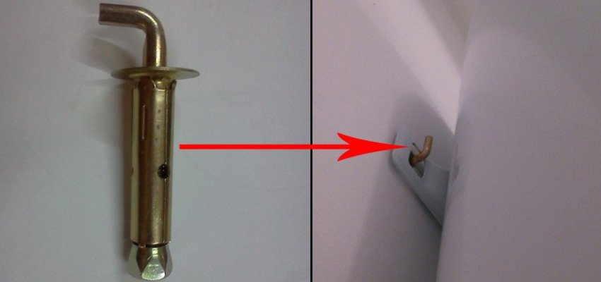 В просверленные отверстия вставляются и закручиваются анкеры с металлическими крюками, а затем на них вешается бойлер