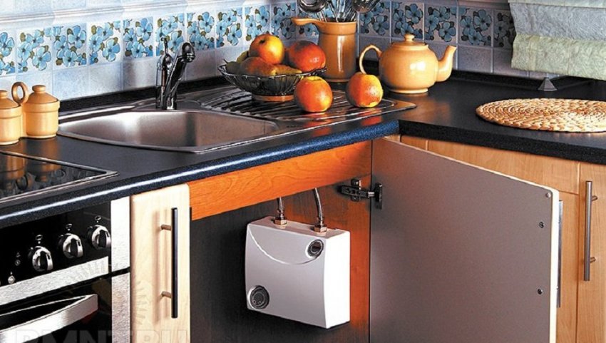 Спрятанный под мойкой бойлер не испортит дизайн интерьера