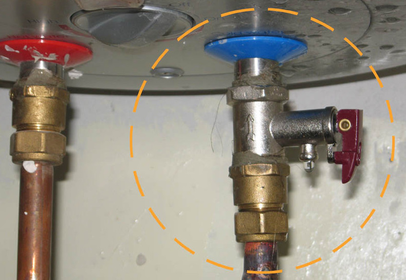 - На подачу холодной воды следует установить предохранительный клапан для сбрасывания излишнего давления. Оно производится в автоматическом режиме. Это помогает предотвратить поломку водонагревателя. Если в комплекте с нагревателем воды этой детали нет, то её придётся купить отдельно. При установке клапана важно учесть направление течения воды. Для облегчения техобслуживания перед клапаном можно врезать дополнительный тройник и подсоединить к нему кран.