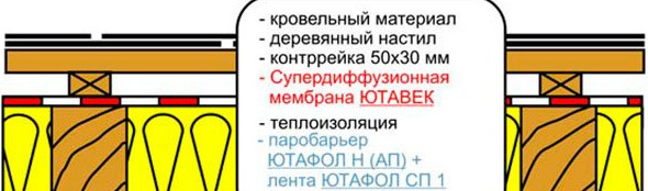 Супердиффузная мембрана укладывается прямо на утеплитель, вентиляционный зазор не нужен