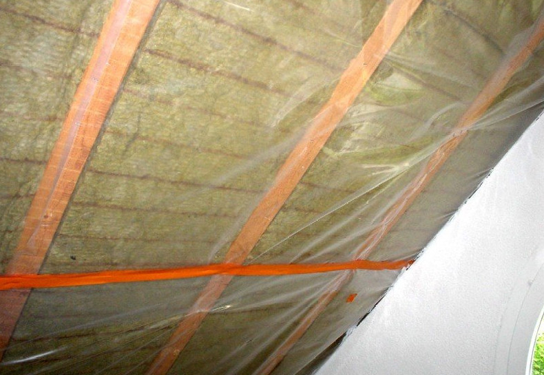 Горизонтальная укладка является более распространённым способом монтажа пароизоляционной плёнки