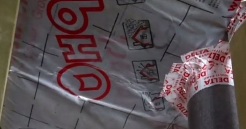 - Там, где нет возможности прикрепить гидроизоляцию к твёрдой поверхности, стыки заклеиваются скотчем.