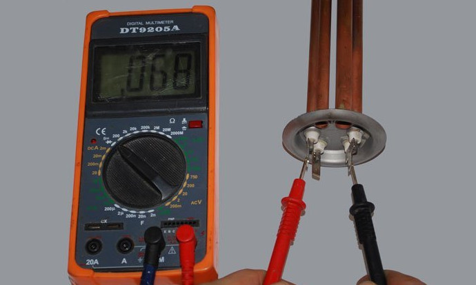 Если тестер показывает нулевое значение или бесконечность, ТЭН вышел из строя