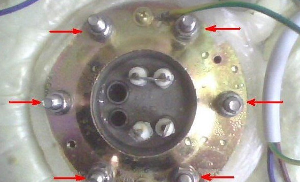 Для того чтобы снять ТЭН, необходимо открутить все гайки его крепления