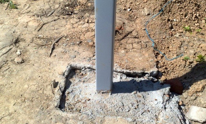 - Установить столб в приямок, проверить соблюдение необходимой высоты и вертикальность.
