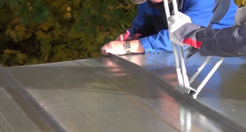 Чтобы заделать стыки швов на жестяной крыше, необязательно демонтировать всё покрытие. Замените листом жести только необходимый повреждённый участок. Соединить между собой две железных пластины можно при помощи фальцевых креплений. Такие соединения надёжны и долговечны. При ремонте крыши своими руками используйте кровельные рамки. В качестве герметика в этом случае применяют простой сурик.