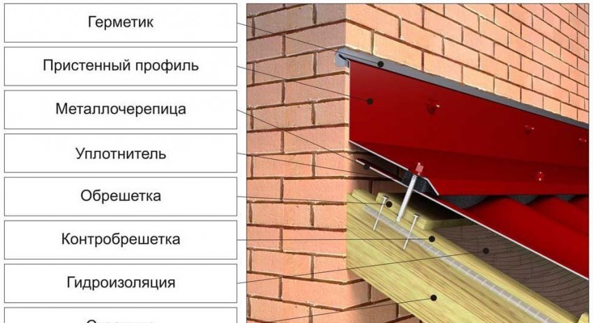 Место примыкания кровли к стене грунтуется слоем штукатурки или битумного праймера