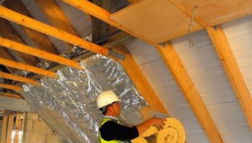 - Устанавливается утеплитель. Он крепится на стропильную систему без щелей.