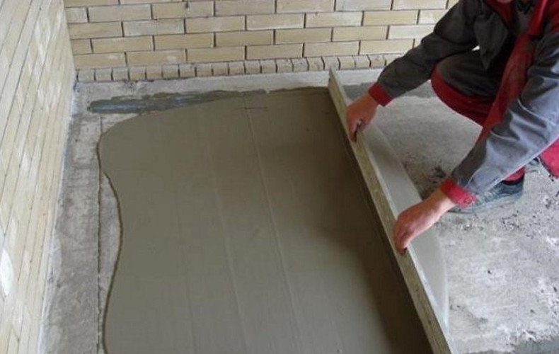 - Поверхность очищают от пыли и грязи, просушивают и выравнивают бетонной стяжкой. После высыхания выравнивающего слоя можно продолжить работы.