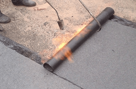 Рубероид наплавляют с помощью газовой горелки с нахлёстом полотен друг на друга