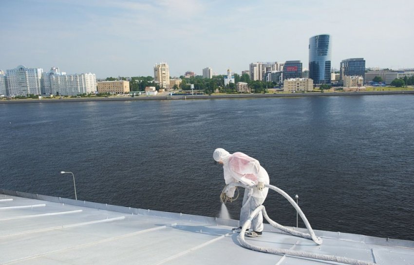 Жидкая резина часто используется для гидроизоляции больших металлических кровель