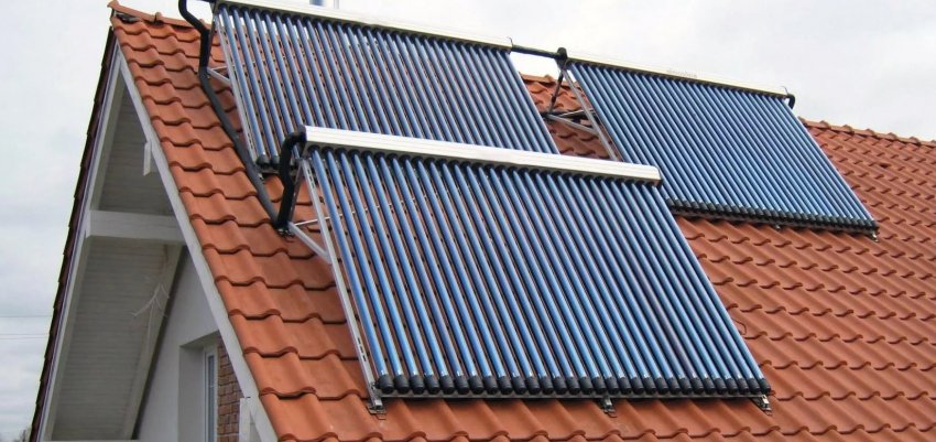 - солнечные коллекторы. Представляют собой трубки со специальным покрытием, использующие энергию солнца для нагрева воды. Такие коллекторы обычно располагаются на наклонных крышах домов в южных регионах нашей страны;