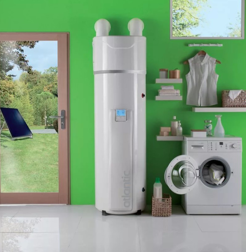 Бойлеры с тепловым насосом подключаются к системе вентиляции и используют энергию уходящего тёплого воздуха для нагрева воды