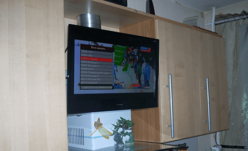 - ТВ-устройство ставить на полку над микроволновой печью. При таком подходе не придётся сомневаться в устойчивости прибора;