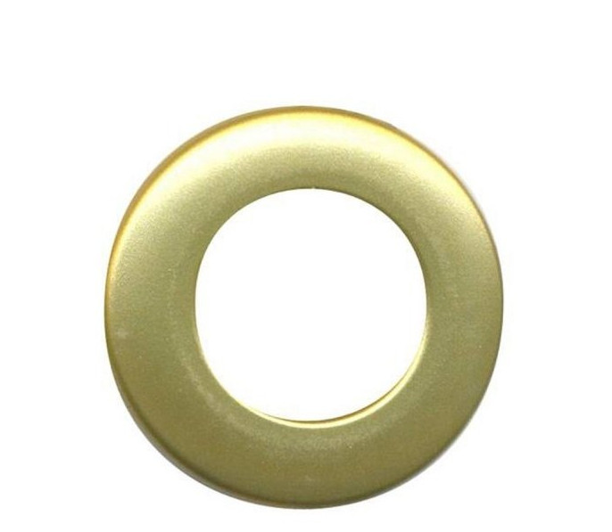 Пластик служит основой для недорогих люверсов, которые могут быть любого цвета. Часто встречаются белые изделия, кольца цвета натуральной древесины, серебристые и золотистые. Они отличаются прочностью, устойчивостью к влажности и подходят для кухни и штор из разных тканей. Например, кольца фирмы Chersa представлены в 10 цветах и имеют стандартный размер 35 мм. Стоимость набора таких элементов из 12 штук составляет около 1 100 р.