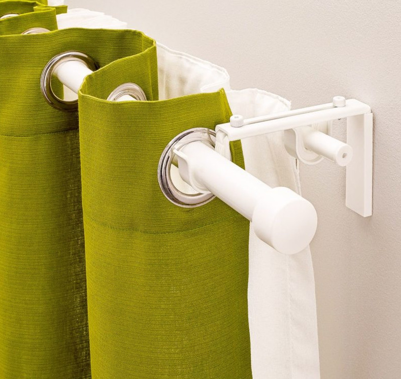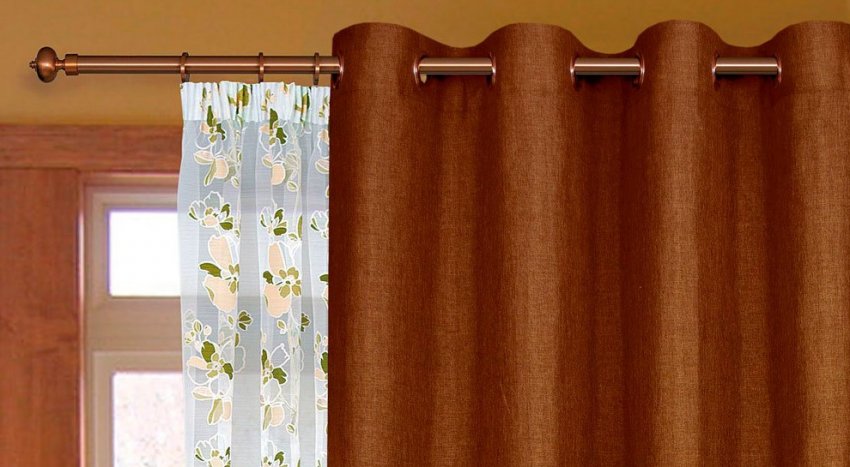 - диаметр трубки карниза должен быть примерно на 0,5–1 см меньше внутреннего диаметра колец-люверсов. Это позволит свободно передвигать занавески. При этом стоит учесть, что слишком большие кольца на тонкой перекладине выглядят несуразно и могут испортить всё оформление окна.