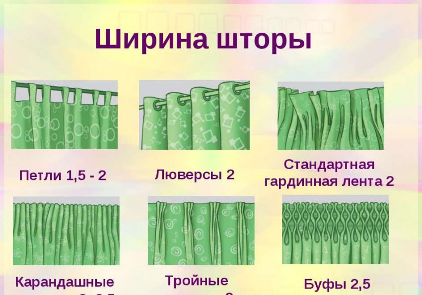 Перед подсчётом количества люверсов нужно определить ширину шторы. Для этого измеряют длину карниза от одного ограничителя до другого, а затем производят расчёт ширины полотна по формуле в сантиметрах: длина карниза/количество штор х 2 (коэффициент сборки для люверсов) + 5 см (нахлёст) = ширина одной занавески. При самостоятельном пошиве следует прибавить к полученному результату ещё по 2 см на каждую сторону для обработки швов.