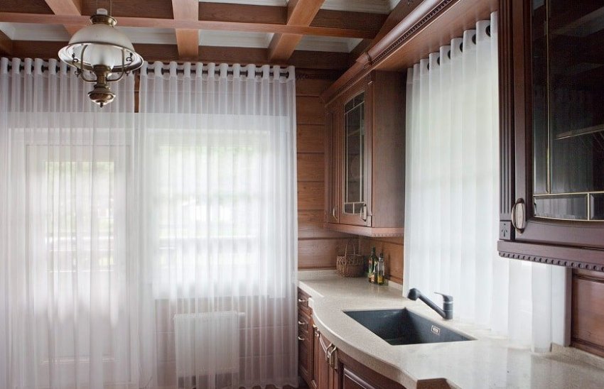 От оформления окон на кухне зависит уют и комфорт в помещении. Для этой цели можно использовать разные варианты штор, а одним из самых удобных являются портьеры на люверсах.
