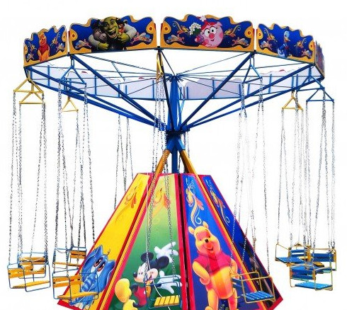 Большая и тяжелая цепочная карусель с электрическим приводом устанавливается в парках аттракционов