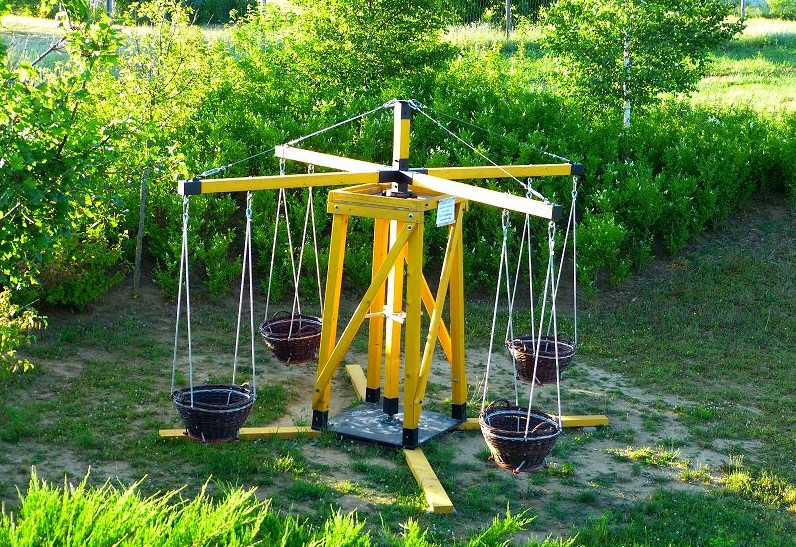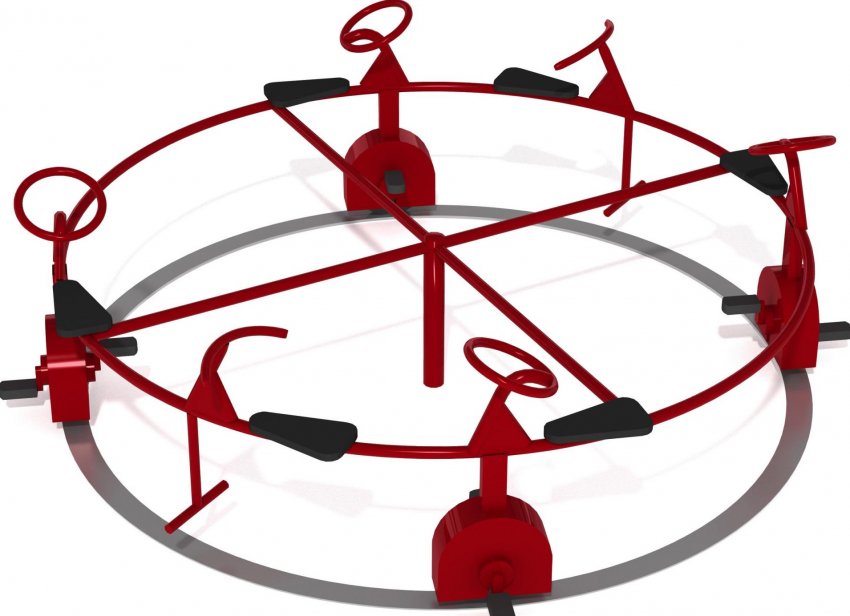 Принцип действия такой карусели заключается в крутящем моменте элементов конструкции, закреплённых на оси