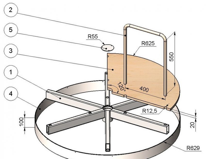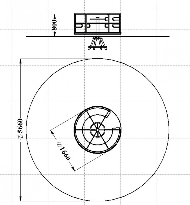 Мы выбрали для изготовления самую простую механическую карусель с платформой и поручнями, без сидений; учли эргономику и нагрузку на все элементы.