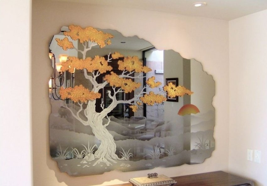 - Витраж на зеркале — хороший выбор для небольших помещений. Он создаст перспективу пространства и зрительно увеличит комнату.Витраж на зеркале создаст ощущение перспективы и расширит маленькое помещение