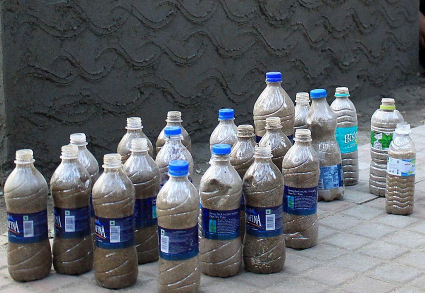 - песок (мелкие камушки, сухая глина и т. п.) для наполнения пластиковых ёмкостей;